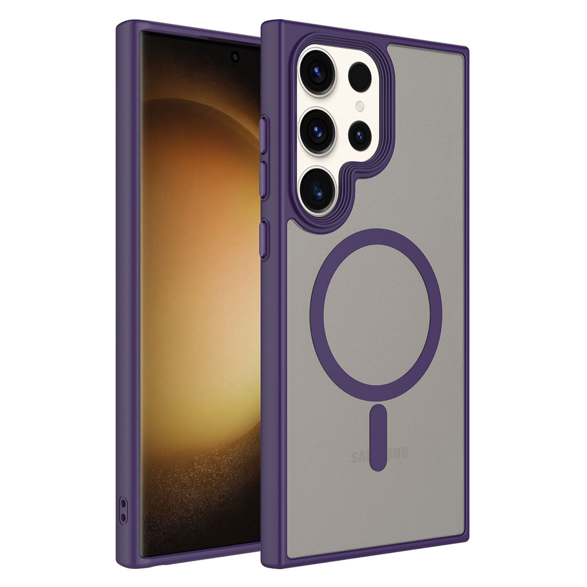 Galaxy S23 Ultra Kılıf Mat Arka Yüzey Wireless Şarj Özellikli Zore Flet Magsafe Kapak Derin Mor