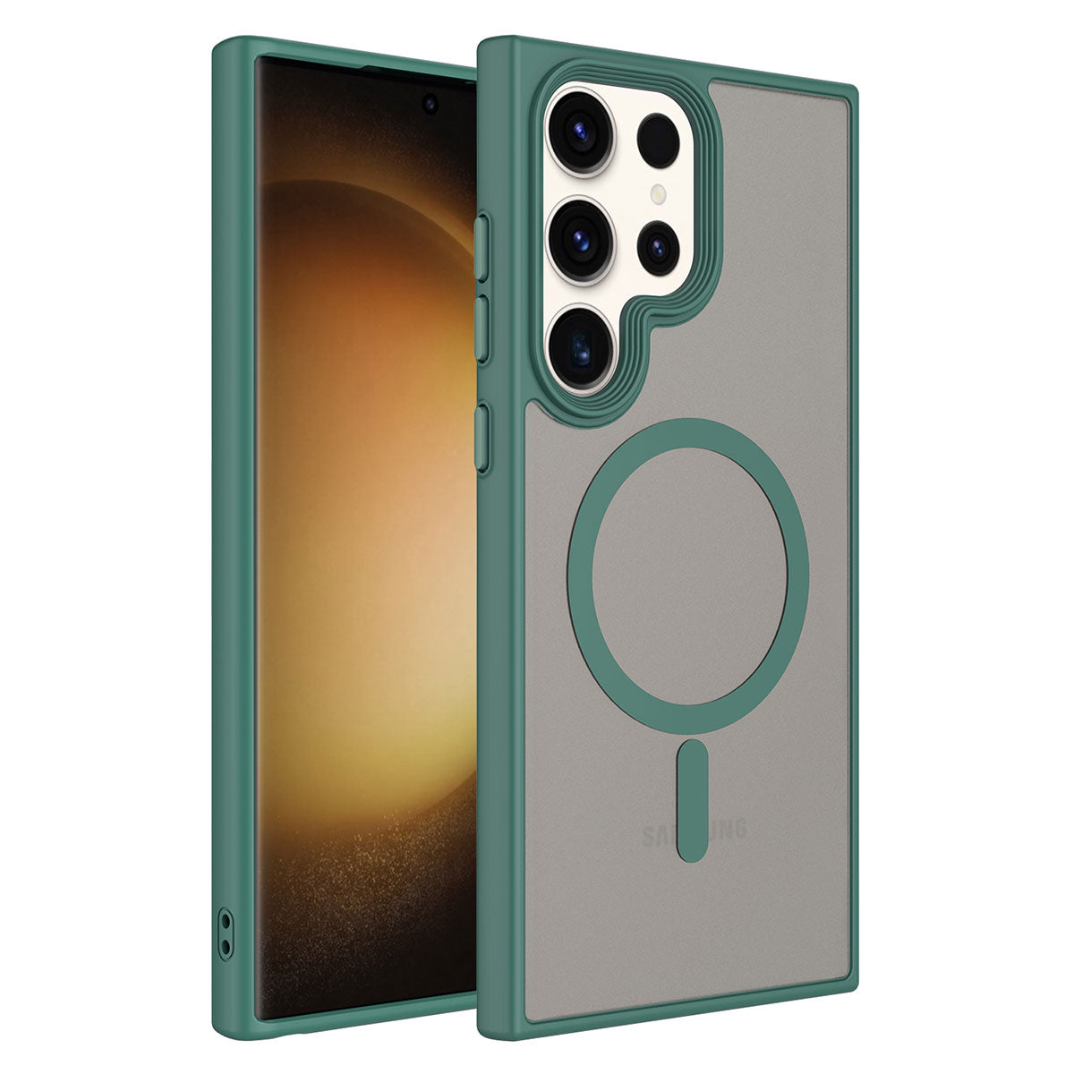 Galaxy S23 Ultra Kılıf Mat Arka Yüzey Wireless Şarj Özellikli Zore Flet Magsafe Kapak Yeşil