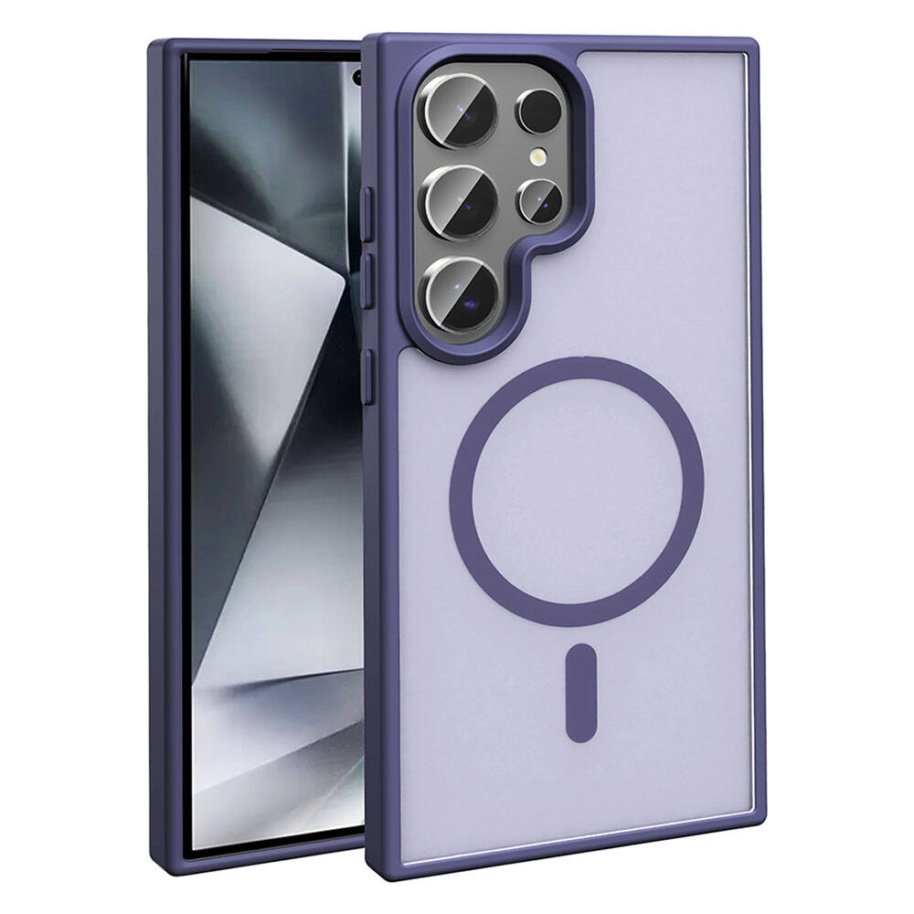 Galaxy S24 Ultra Kılıf Magsafe Şarj Özellikli Mat Arka Yüzey Zore Sio Kapak Koyu Mor