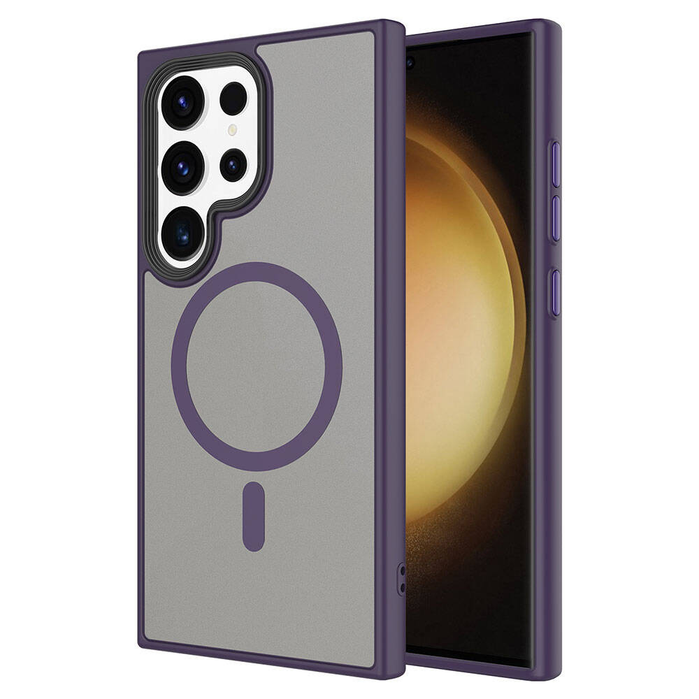 Galaxy S24 Ultra Kılıf Sert PC Arka Yüzey Wireless Şarj Özellikli Zore Flet Magsafe Kapak Derin Mor