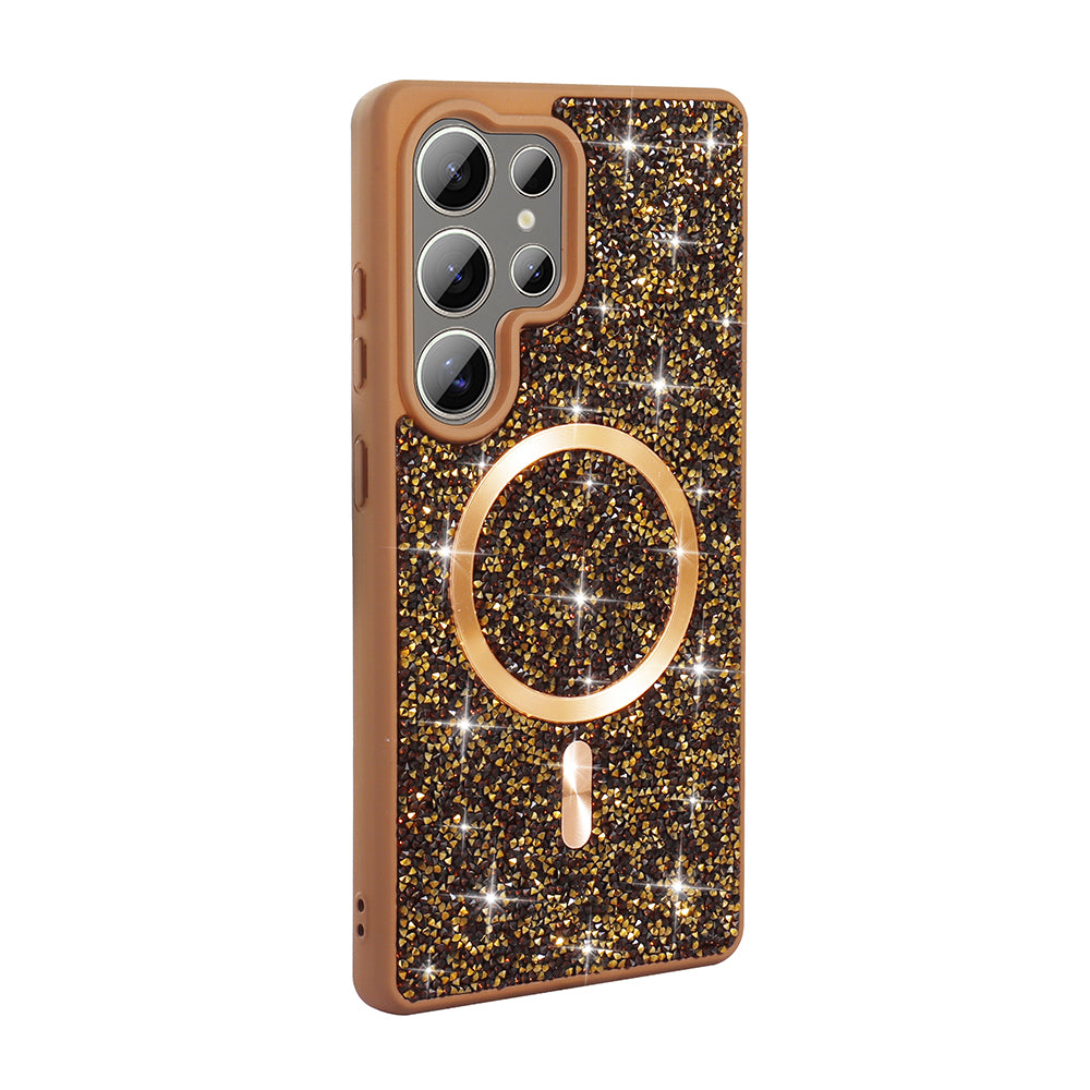 Galaxy S25 Ultra Kılıf Pırlanta Tasarımlı M-safe Şarj Özellikli Zore Mozaik Silikon Kapak Desert Titanyum