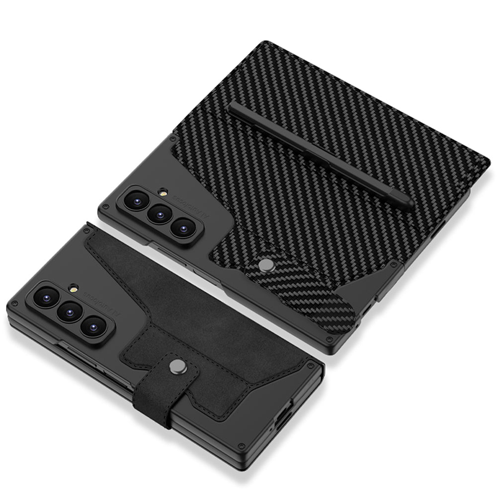 Galaxy Z Fold 7 Kılıf Kamera Korumalı Karbon Tasarımlı Zore Kıpta Kalem Bölmeli Fest Kapak